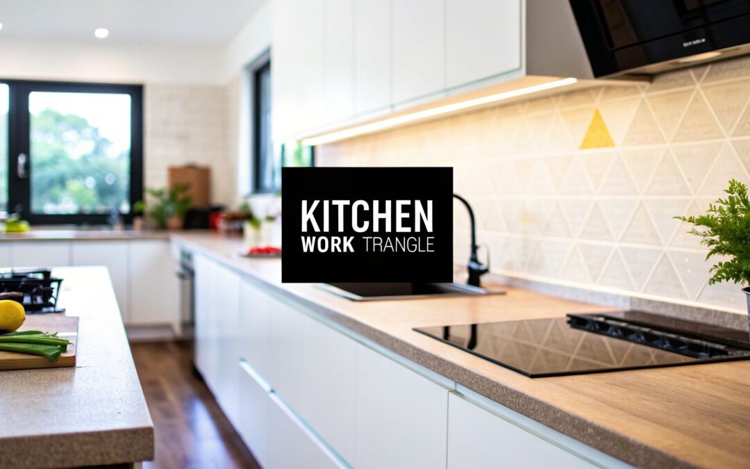 Think of the triangle less as a strict geometric rule and more as a guide for creating logical, clear paths between your three main work zones—the sink, the stove, and the refrigerator. The layout should just feel right, cutting down on the wasted steps and effort it takes to whip up a meal.